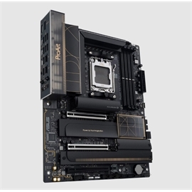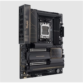 ProArt X870E-CREATOR WIFI The ProArt X870E-Creator WiFi empowers creators of all levels by maximizing the performance of the latest AMD Ryzen 9000, 8000 and 7000 Series processors with 16+2+2 team power stages, DDR5 slots, PCIe 5.0 and lightning-fast connectivity including dual USB4, 10G and 2.5G Ethernet, and WiFi 7. This motherboard manifests a professional, elegant and precise vision for content creators of all kinds, with a style elevated by tone-on-tone layers of black infused with metallic gold touches. A translucent I/O cover also gives users a stylish peek at the premium connectors within. All You Need for Maximum Productivity Dual USB4 Connectivity Get immersed in your creations with two USB4 ports for connecting to all your content-creation gadgets, enjoying up to 40 Gbps bi-directional data transfers. To further push your creative work with one 8K or two 4K color-accurate monitors, you can connect your discrete graphics card to the onboard DisplayPort In port on the rear I/O panel and direct the video output via the USB4 port. Ultrafast Networking 10 Gb and 2.5 Gb Ethernet Dual Ethernet ports provide fast data transfers simultaneously for 2.5 Gb internet streaming or uploading and 10 Gb for local network-attached storage (NAS), allowing for improved data organization and security. WiFi 7 The revolutionary WiFi 7 is up to 4.8X faster than standard WiFi 6, thanks to technology like 320 MHz channels on the 6GHz band and 4K QAM. Multi-Link Operation (MLO) provides a more stable WiFi connection and lower latency, unlocking the realms of the unknown in gaming, streaming and industrial IoT. ASUS WiFi Q-Antenna Dual transceivers support the 2.4, 5 and 6 GHz bands to enable faster throughput, with directional sensitivity to improve signal quality and cover greater distances. |