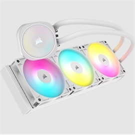 NAUTILUS 360 RS ARGB Liquid CPU Cooler - White The CORSAIR NAUTILUS RS ARGB Liquid CPU Cooler delivers efficient, low-noise cooling with straightforward connectivity - no controller required, just plugs directly into your motherboard. Includes: Efficient low-noise cooling to help your CPU reach its full potential Plugs directly into your motherboard, no additional controllers necessary RS120 ARGB fans deliver high airflow, static pressure, and low noise Precise PWM fan speed control with Zero RPM mode Compatible with Intel LGA 1851, LGA 1700, and AMD AM5, AM4 COOL, QUIET, POWERFU LSIMPLE, FOCUSED PERFORMANCE Renowned CORSAIR engineering delivers high-performance, low-noise cooling, enabling your CPU to reach its full potential. MADE TO FIT MAXIMUM CONTACT The slightly convex design ensures optimal contact with your CPUs integrated heat spreader, with thermal paste applied in an optimized pattern to speed up installation. FOCUSED AIRFLOW HIGH AIRFLOWAND STATICPRESSURE RS120 ARGB Fans deliver powerful airflow with high static pressure to push air through the radiator. CORSAIR AirGuide technology and Magnetic Dome bearings ensure excellent cooling performance while keeping noise to a minimum. STAY CONNECTED DAISY-CHAINEDCONNECTIONS Simplify your system wiring by daisy-chaining your RS fans and connecting them to a single 4-pin PWM fan header on your motherboard. |
