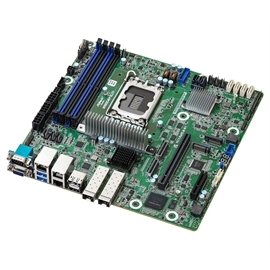 W880D4U-2L2Q • Support ATX PSU or 12V DC-in • Micro-ATX (9.6" x 9.6") • Supports Intel® Core™ Ultra Desktop Processors (Series 2) • 4 DIMM slots (2DPC), supports DDR5 ECC/non-ECC UDIMM, CUDIMM Memory • 1 PCIe5.0 x16, 1 PCIe5.0 x4 • 1 MCIO (PCIe5.0 x8 or 2 PCIe5.0 x4), 1 MCIO (PCIe4.0 x4) • Supports 2 M.2 (PCIe4.0 x4) • 8 SATA 6Gb/s • 2 SFP28 (25GbE) by Intel® E830 • 2 RJ45 (1GbE) by Intel® i210 • 1 HDMI, 1 DisplayPort • Remote management (IPMI) |