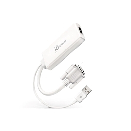 JDA214 VGA to HDMI Video Audio Adapter About This Product • Plug-and-Play • No software required • Easily transform your VGA device into a HDMI connection • Supports video resolutions up to 1920x1200 • Supports USB audio • Built-in USB power cable • Compact, light-weight design The JDA214 VGA to HDMI video audio adapter allows you to connect the VGA input from your laptop or desktop to the HDMI output of a monitor or projector by converting the VGA video signal from the input device into a HDMI output. With a built-in USB power cable, the device is powered using the USB port on your computer. The adapter supports resolutions including high definition 1080p, up to 1920x1200. The adapter can also increase your productivity by extending your computer's desktop onto a secondary monitor, doubling available workspace. This adapter has a high quality, compact design for long-term durability and a minimal footprint. With its plug-and-play technology, there is no need to download any drivers. |