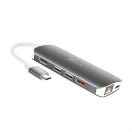 USB-C™ Multi Adapter (10 Functions in 1) DisplayPort™ Alt Mode / USB™ Power Delivery Compatible HDMI™/ VGA / Ethernet / USB™ 3.1 / SD™ & MicroSD™ / PD 3.0 Model: JCD384 This pocket-sized multi-adapter provides all the ports you need for maximum productivity. It allows you to connect your laptop to an additional monitor via HDMI™ or VGA. It also connects to an ultrawide monitor. The USB-C™ multi-adapter gives you 2 USB™ Type-A ports for additional peripherals and 1 USB™ Type-A port with BC 1.2 to fast-charge your mobile devices. With USB-C™ Power Delivery 3.0, the adapter offers both upstream and downstream charging when connected to a USB-C™ power adapter. It also provides direct access to a wired network and to your SD™ & microSD™ memory cards. The JCD384 is perfect for small workspaces, home offices and for on-the-go! 9 Ports on 1 Device This pocket-sized multi adapter allows you to connect a variety of peripherals and a monitor to your computer. Two Video Output Options Features a 4K HDMI™ and a VGA port for flexible display configuration. Power Delivery 3.0 Power Delivery 3.0 provides you with more stability and better compatibility. Only have PD 2.0? Don't worry, PD 3.0 devices work with PD 2.0. Connect Your USB™ Devices Additional USB™ 3.0 ports to connect your mouse, keyboard or other USB™ peripherals. BC 1.2 Fast Charging Fast charge your power-hungry mobile devices at a much faster rate than the standard USB™ 3.0 ports. Reliable Network Connectivity Features a Gigabit Ethernet port for an ultra fast network connection. Memory Card Reader/Writer The spring push design ensures your memory card is inserted safely. |