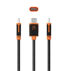 USB-C® to USB-C® Sync & Charge Cable (1.8m / 6 ft.) With a double-braided polyester cover for high durability Model: JUCX24 Your Go-To USB-C® for Seamless Power and Sync. Our premium USB-C® to USB-C® cable is built to withstand daily wear and tear. Featuring a robust double-braided polyester cover, it offers superior abrasion resistance for an extended lifespan. Enjoy high-speed charging for all your USB-C® devices with a powerful 3A output, alongside seamless data transfer between your smartphones, tablets, and laptops at speeds up to 480 Mbps. The convenient reversible USB-C® connectors ensure hassle-free connections every time. Color | Black |